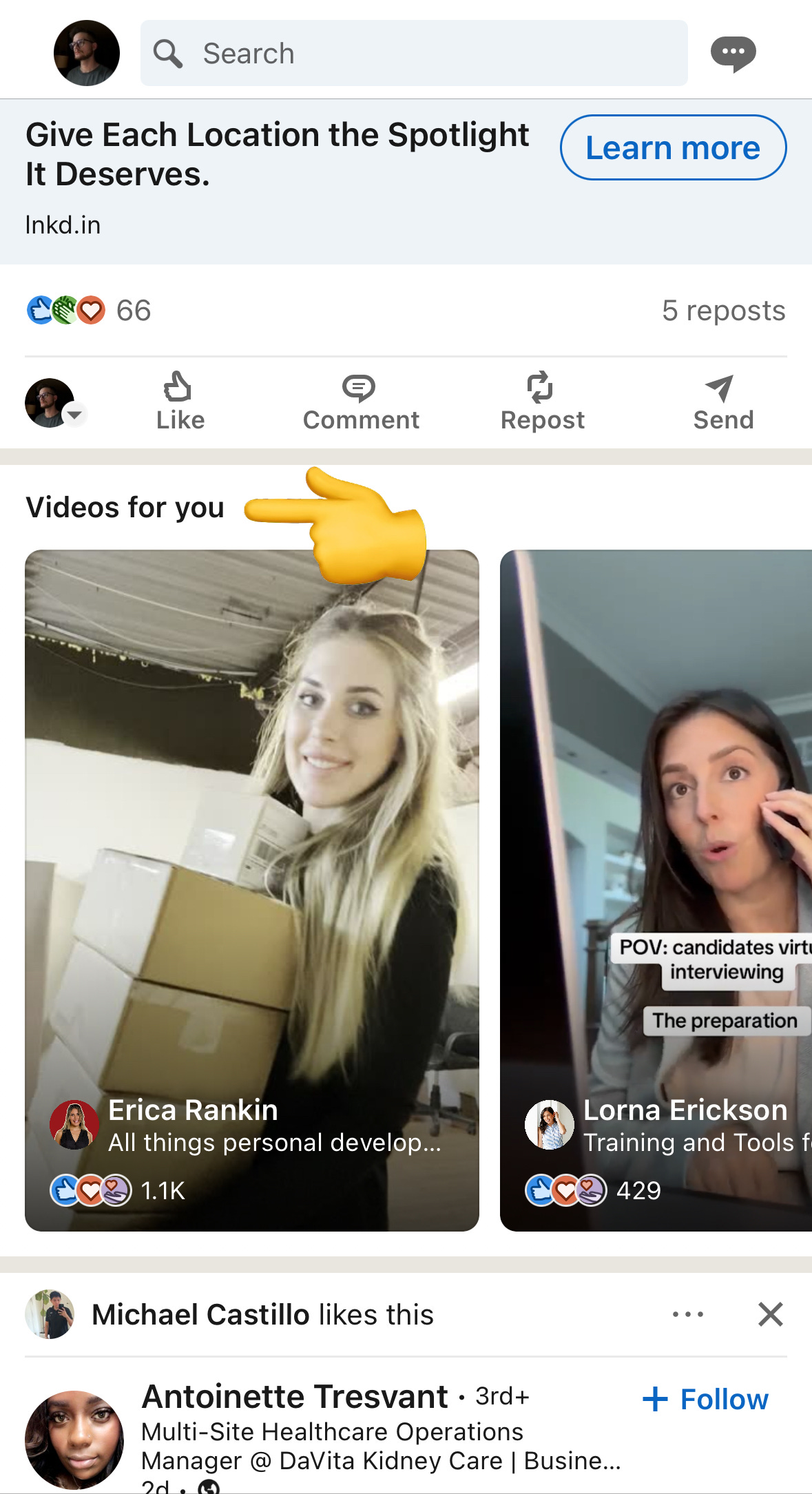 If you scroll through your LinkedIn feed, you’ll notice a vertical video carousel titled “videos for you.”